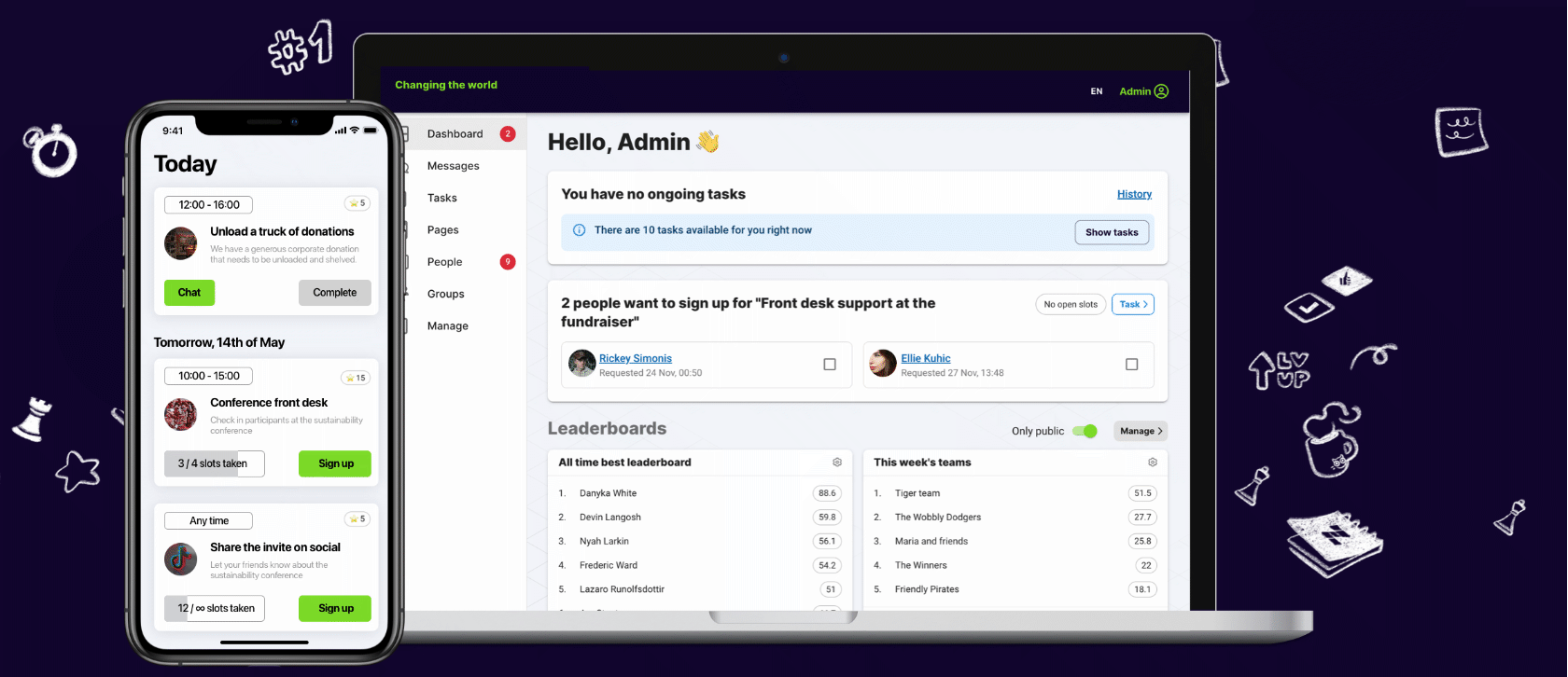 Private and secure: GDPR-compliant data handling ensures volunteer information stays secure and is never shared without consent. Volunteers can't see each other's contact information or personal details. All chats need to include admin oversight.