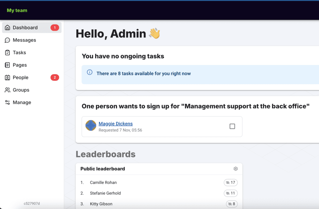 - Gamification: The point-based system and leaderboard feature foster a sense of engagement and healthy competition among volunteers.